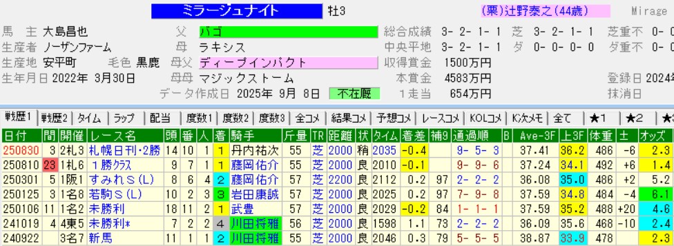 休み明けの12キロ増から、さらに8キロ増やして前走は444キロ。勝ち馬ミラージュナイトはオープン級の馬だから悲観する必要はない。