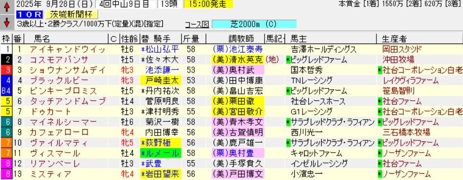 中山10R茨城新聞杯(2勝)芝2000