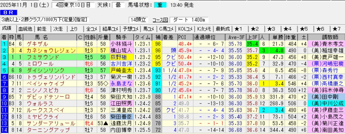 まず今年のWIN5対象レースだった東京ダ1400の結果を確認する。