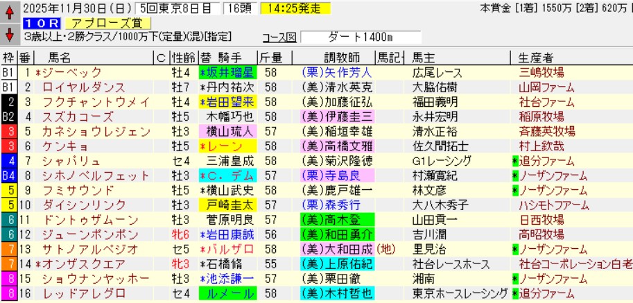 東京10Rアプローズ賞(2勝)ダ1400