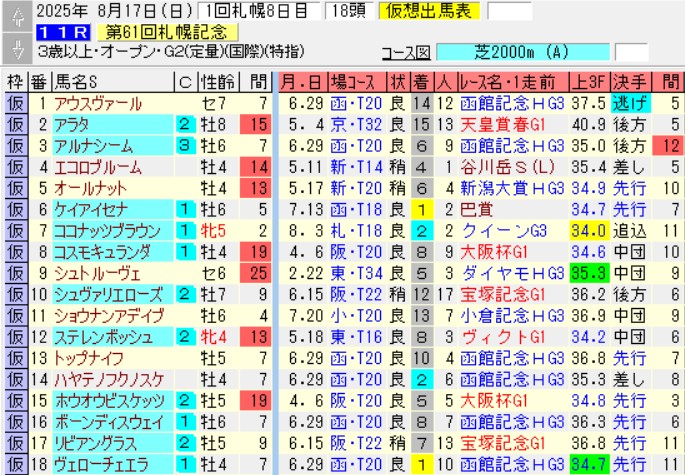札幌11R札幌記念(G2)芝2000