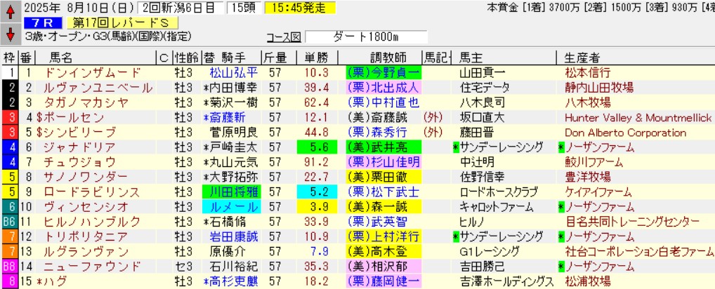 登録メンバーを見た途端にやる気がなくなったレパードS(G3)。それでも逃げちゃダメだ逃げちゃダメだ逃げちゃダメだ逃げちゃダメだということで情報を精査したのが、先日に公開した考察記事の内容だ。