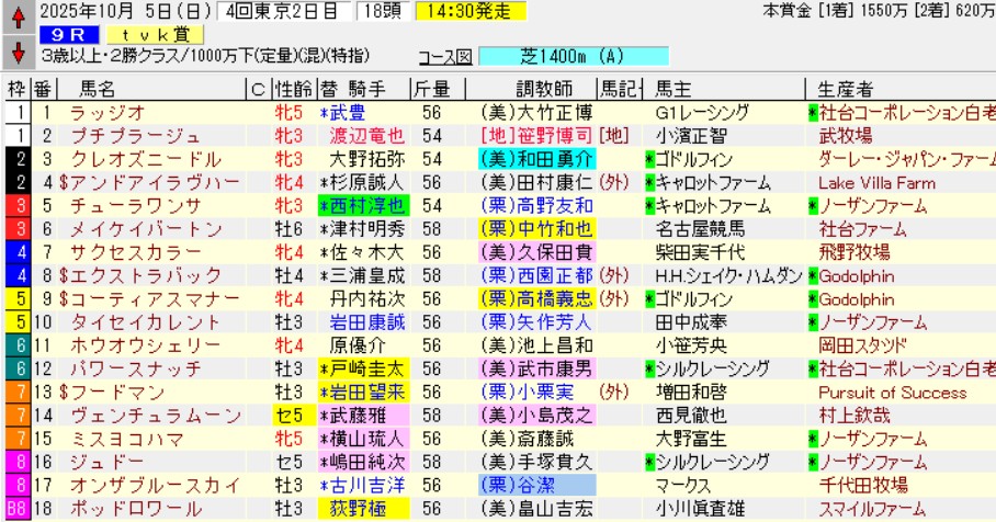 というわけで今週こそしっかりと狙い撃とうと気合を入れたはいいが、tvk賞はさっぱりわからなかったのだからしんどい。阪神vs横浜でお世話になっているtvkだが、これはなかなか悩ましいレースではないか。