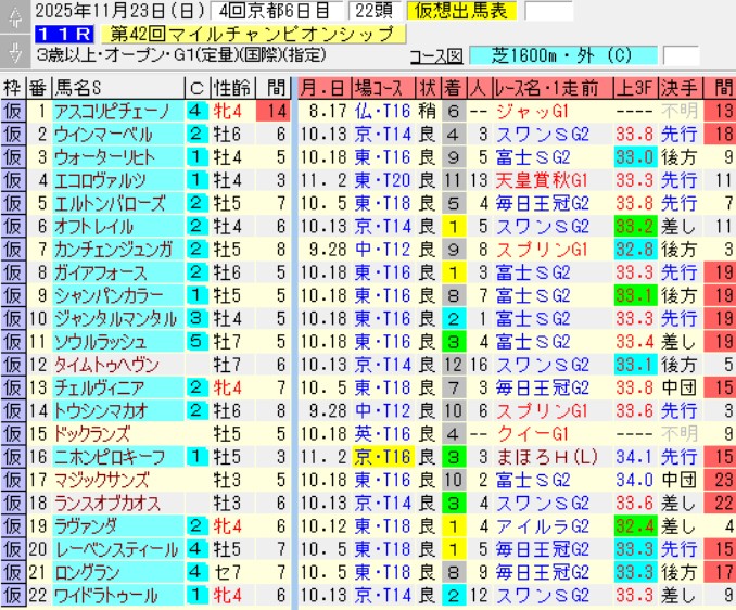 今週の日曜京都メインは秋のマイル王決定戦・マイルCS(G1)が開催。