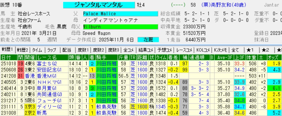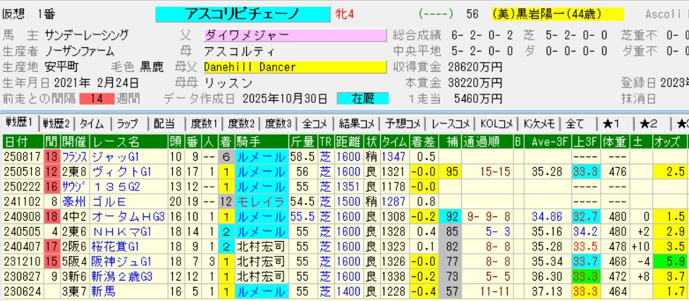ちなみに2歳時の評価はジャンタルマンタルよりアスコリピチェーノが上と考えていた。
