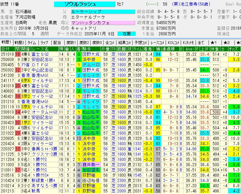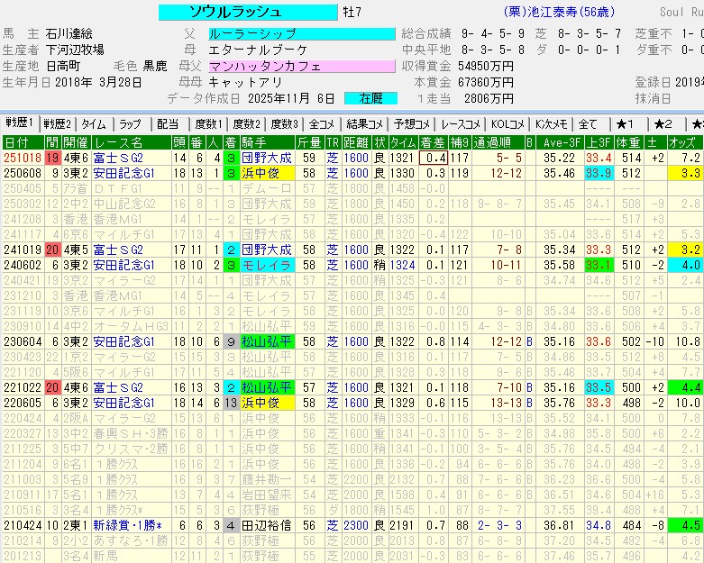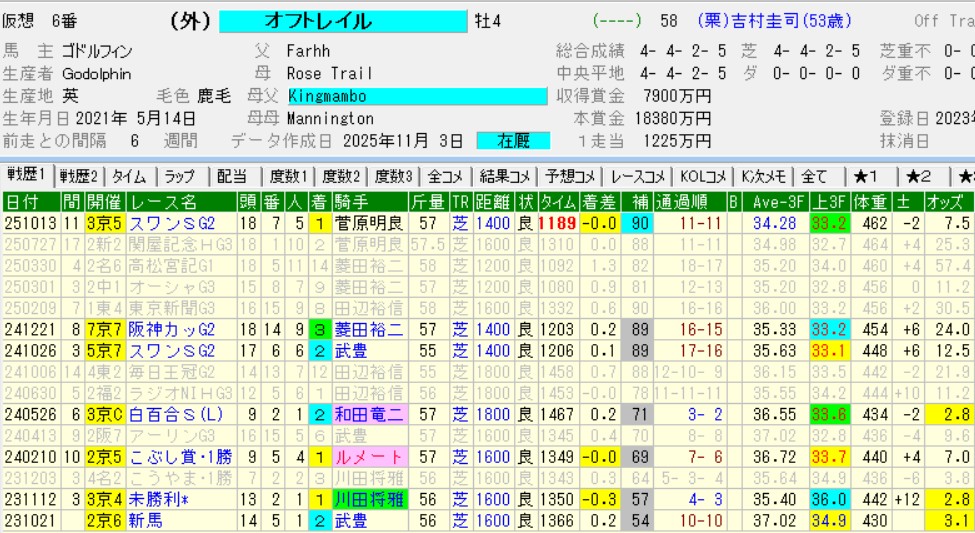 そして当方の持論である「お競馬は距離適性よりコース適性」理論にも合致。まあ近走は1200や1400で好走しているけど、1800のラジオNIKKEI賞(G3)も勝っている。