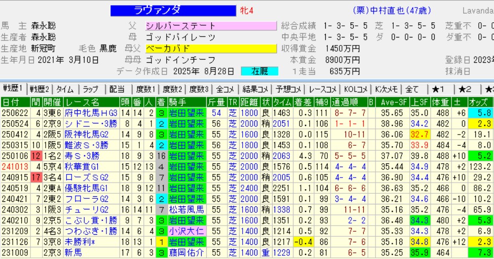 まずこのレースのメンバーを見たとき、なぜラヴァンダいるの?と思った。ラヴァンダといえば昨年10月京都の秋華賞(G1)の追い切りチェックで、当方が超抜◎評価でピックアップして狙い撃った馬である。