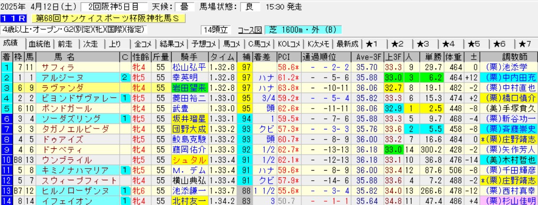 阪神牝馬Sは前残りしたサフィラを捕まえ切れずにハナ差2着。