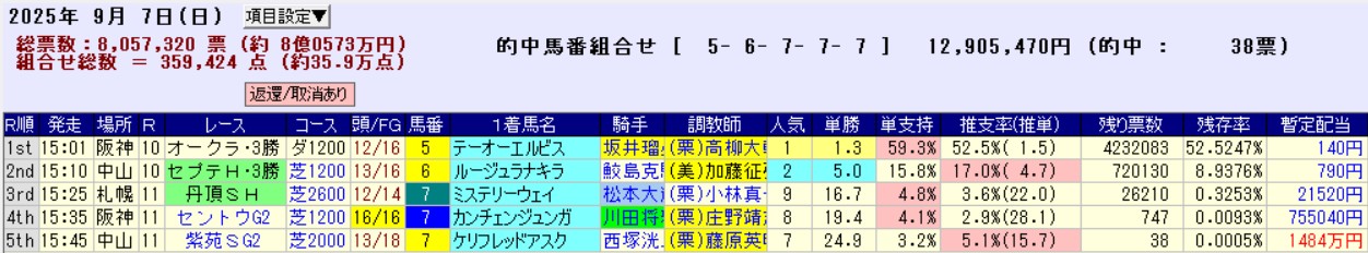 9月7日のWIN5