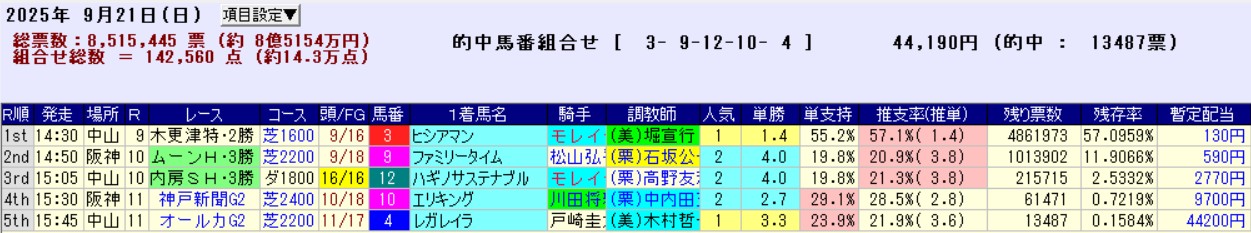 9月開催のWIN5まとめ