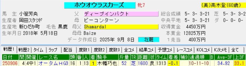 そういや京成杯オータムハンデ(G3)をぶち抜いたホウオウラスカーズもディープインパクト産駒だったよね。