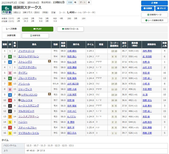 1番人気で3着ストレングスは馬の力に問題なし。勝ちを焦った松山弘平の早仕掛けも響いた印象。メインレースのゼットリアンでも2着に敗れたあたり、今夏のWIN5で全敗未勝利の不調も頷ける。