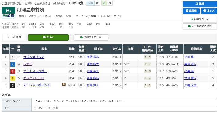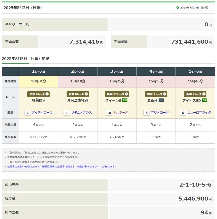 2025年8月3日の結果