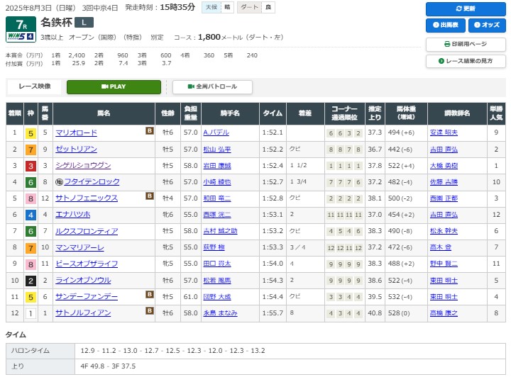 当方は綾也の分だけ足りないと考えていたけれど、バカにするなと言わんばかりの好騎乗で返り討ちに遭ってしまった。終わっていれば今夏のトレンドである「ダートは4,5番人気を買え」に合致というオチ。こういうときは考えない買い方もありだなと痛感させられる結果だ。