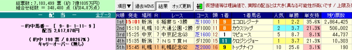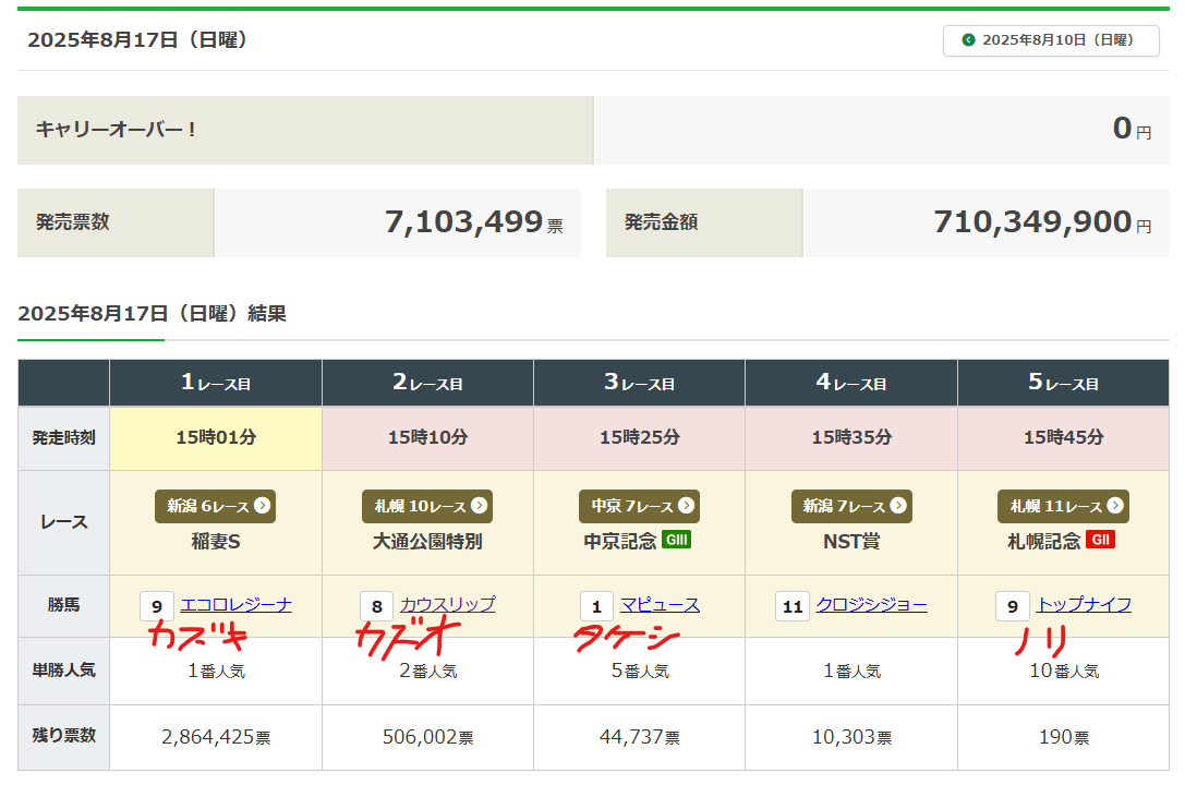 いやこれもうね、WIN5じゃなくて札幌記念だけのWIN1でも無理よ。網を広げても意味なし胸なし貧乳最高だぜでおしまい。