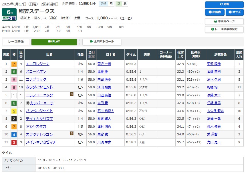 あと、鬱陶しかった暑熱開催も今週末で一区切り。来週からは通常スケジュールに戻ります。6レースや7レースっての面倒だったからいいね。