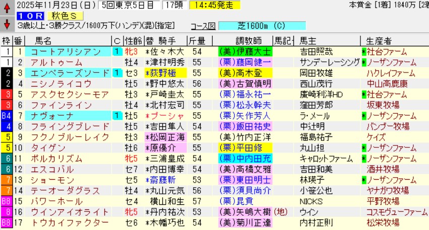 東京10R秋色S(3勝)芝1600