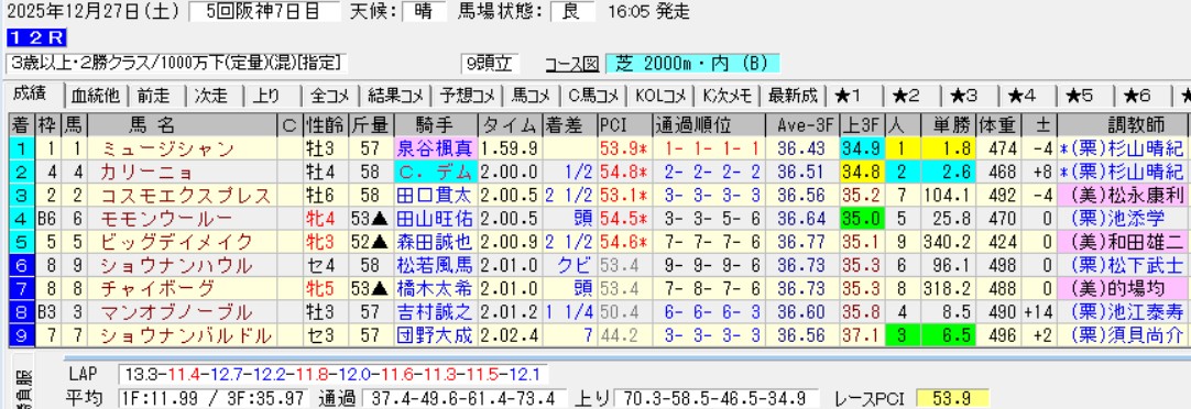 特に酷かったのが12Rであり、先手を取った1-2番人気馬がそのまま終了。後ろの騎手は何をしたかったのか疑いたくなるほどである。