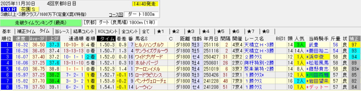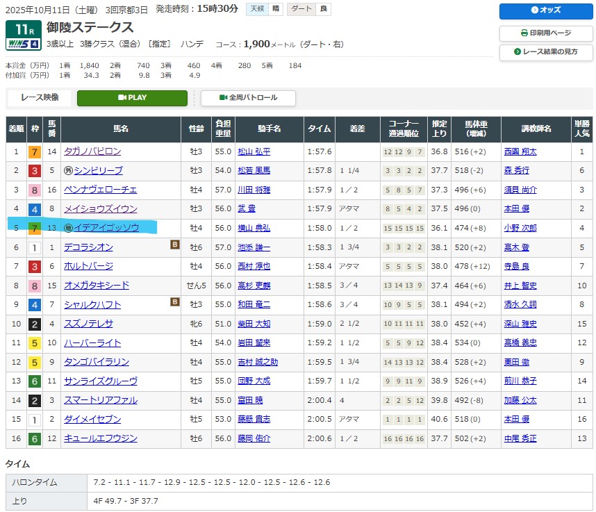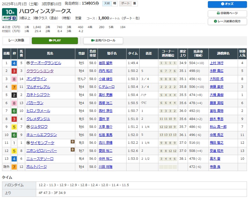 アーロンイメルは展開待ちで本物じゃないと考えていたのだが、前走の勝ちタイムは先述したハロウィンSの1分49秒4を0秒3上回った。