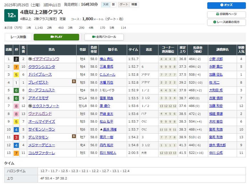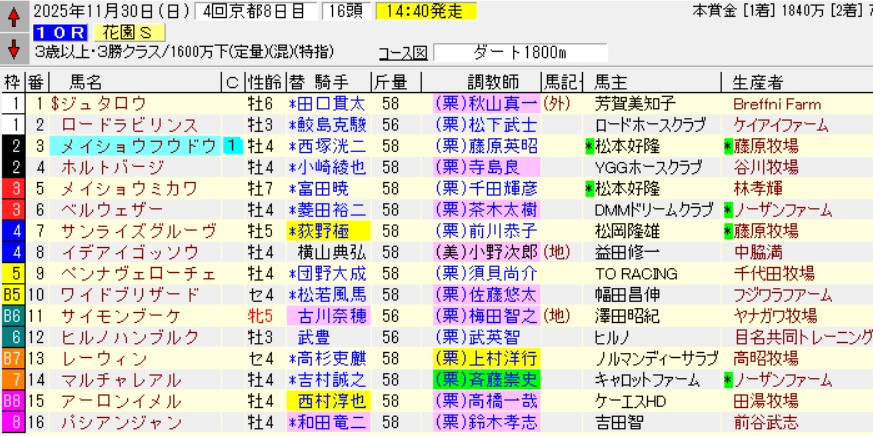暴走王・浜中俊が作り出した糞ペースだったものの、当人は怪我で年内は休養。仮に無事でもジャパンC(G1)のディープモンスターがいるから乗り替わっただろう。今回は松若風馬への乗り替わりが好材料とは言わないが、前々で積極的な競馬ができるなら、「下手糞でも逃げ馬は買え理論」で相殺可能だ。