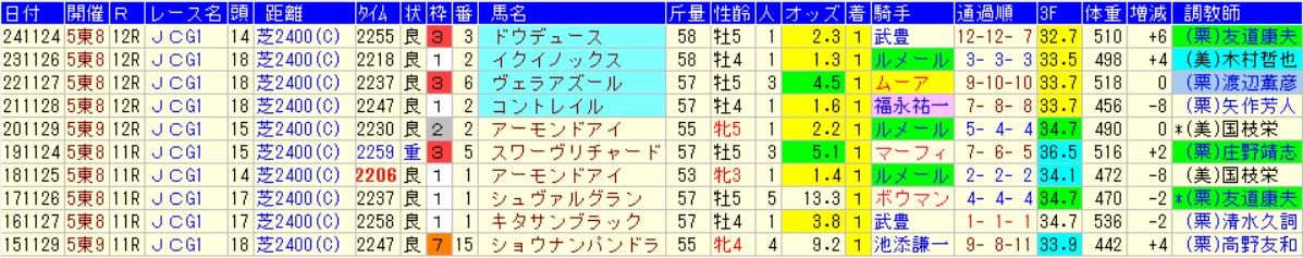 そんなことに思いを馳せる年もある国際G1だ。アーモンドアイが出走しなかった2019年は、3番人気スワーヴリチャードが勝ち、イクイノックスが不在の22年も3番人気ヴェラアズールが優勝した。確かどちらも◎だったの思うので、ジャパンCとの相性は悪くないと思いたい。