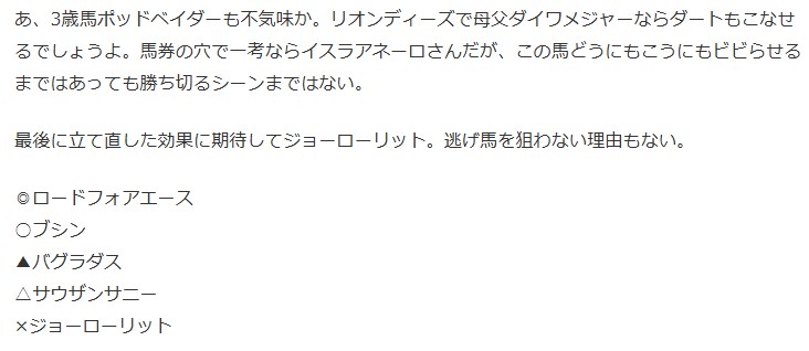 だからポッドベイダーにしても3歳馬で警戒していた1頭。結果こそ二択に失敗してハズレたが、本サイトの読者様から多数のお礼をいただいた。