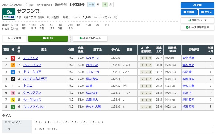 前売りで4番人気だったのは驚かされたが、最終的には2番人気での勝利。ドリームコアが出遅れたことは想定外だったとはいえ、普通に競馬をしていたとしてもアルバンヌが勝てたと信じたい。