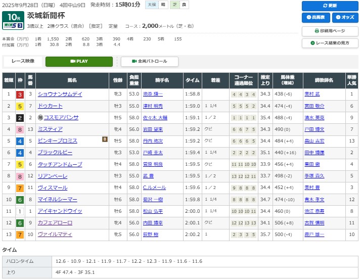 中山10R茨城新聞杯(2勝)芝2000