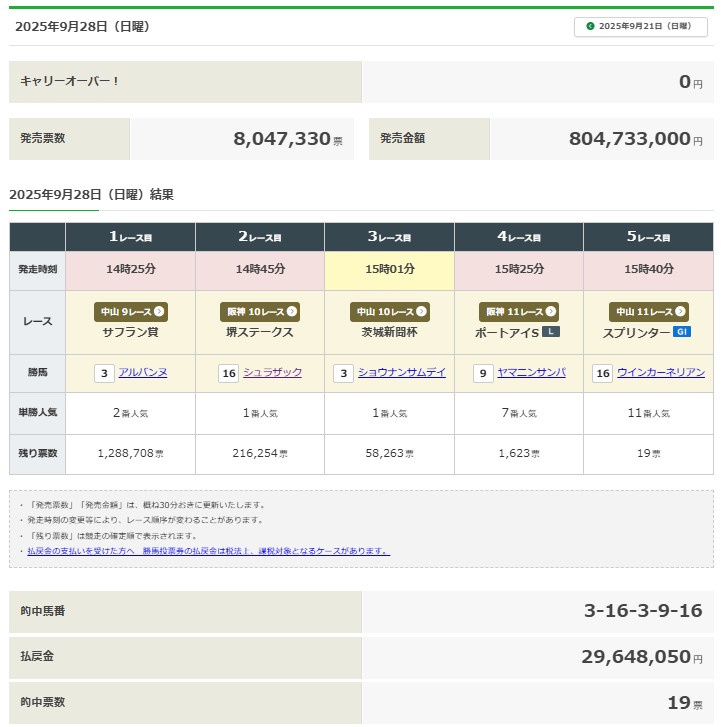 本日のWIN5結果
