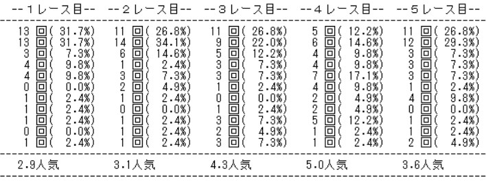 今年の平均人気を見ても、後ろ2つが鬼門だね。いっそのこと前の3つはハマり待ちで後ろ2つの全力勝負が最適解だったりするのかなあ。いや、それもレースの精査をしてこそだね。