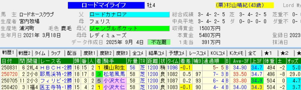 ただ本馬のスピードもなかなかで、反則級の馬がいなければ、すんなり先手が取れるのではないか。このレースで3着のロードマイライフは既に現級を卒業というバックボーンが信頼の証である。