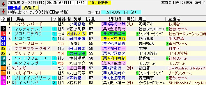 メインレースの新潟2歳Sが重賞のため、リステッドが準オープンという新潟にしては贅沢な組合せかもしれない。