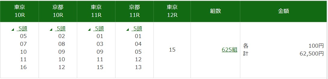3連単で勝負している人も見事だが、普通の馬券ではWIN5みたいに突き抜けた配当って難しいじゃん。うちのサイトの予想記事で万馬券拾った報告をもらいもするけど、俺はもう普通の馬券には戻れないんだよ。なんかほら、頭のねじがぶっ飛んじゃったからさ。