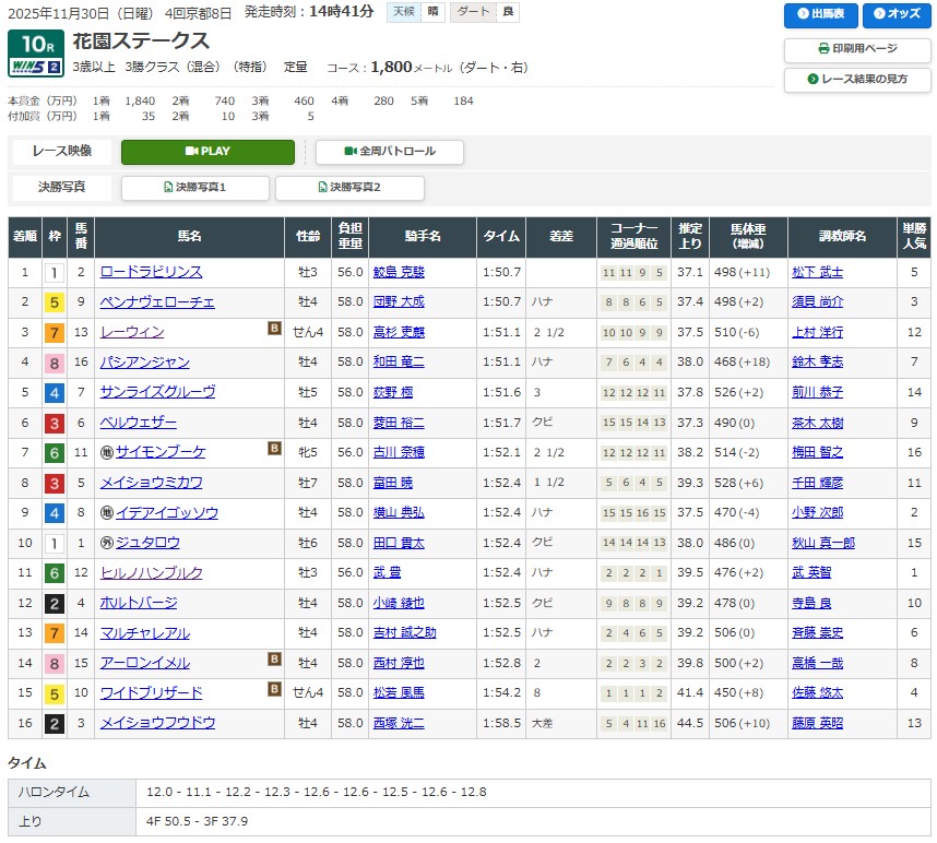 日曜の露骨過ぎる超速馬場を証明した一戦。外差しが決まる雰囲気を察していたから、ロマン枠のハーツコンチェルトも買い目に入れていた。取消で点数に余裕が出来たのは、不幸中の幸いだったのかどうか。