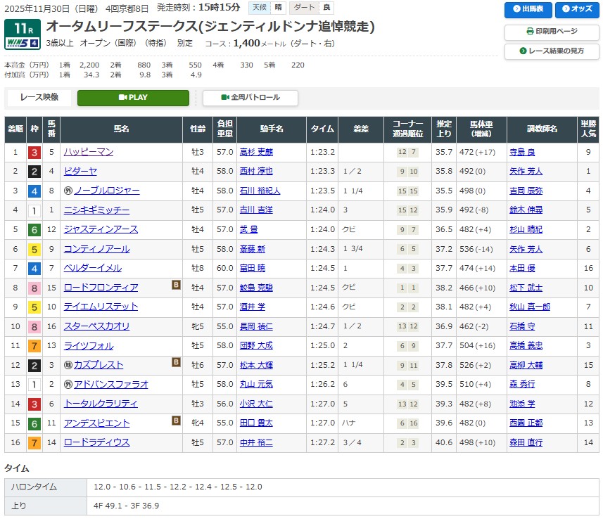 パドック見てなかったけど、ハッピーマンって17キロ増だったのか。これもし対象1レース目で馬体重見るの間に合っていれば、買わなかったかもしれない。