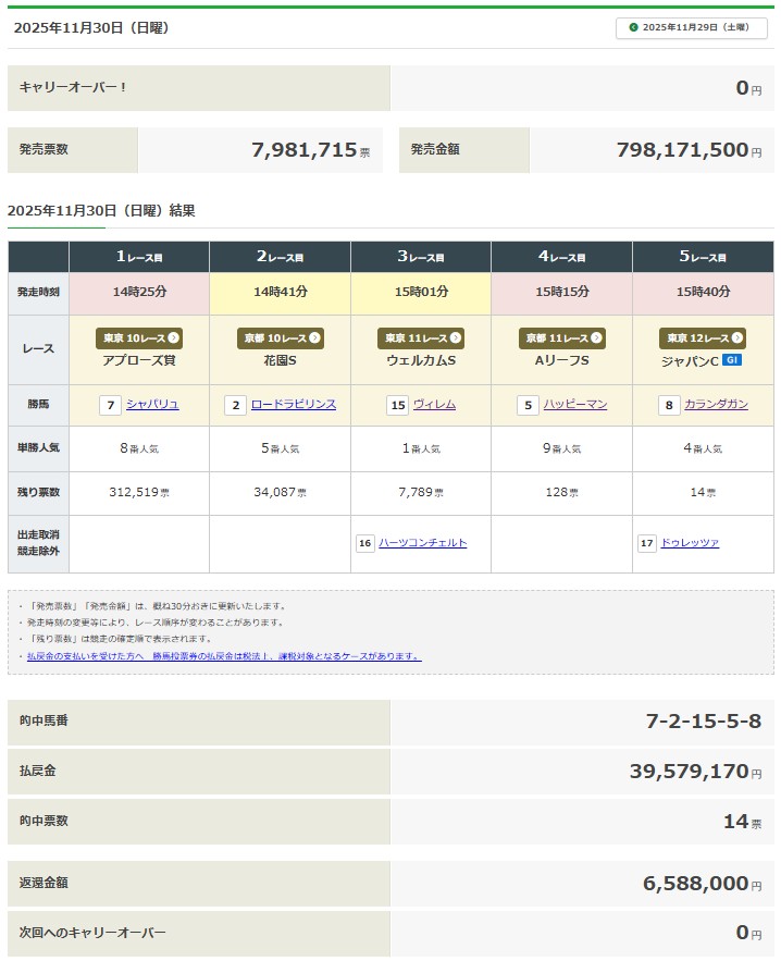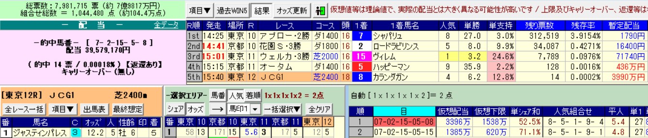 断然人気の馬が2回飛んでいるから想定配当は通常なら1.25倍くらい。約3400万想定のラカンダガンで3957万ならマスカレでも最低1500万はついたはず。
