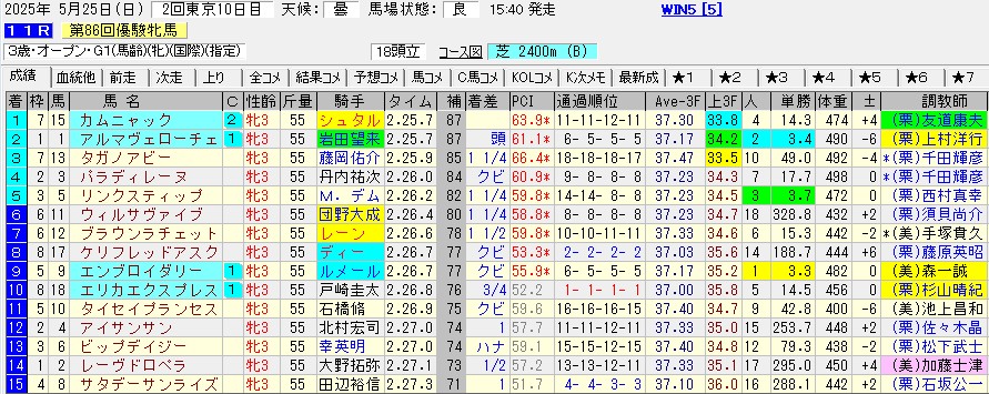 優駿牝馬(G1)で早め先頭のアルマヴェローチェ岩田望来に注文を付けたのは、差し馬場にもかかわらず仕掛けが早かったこと。その結果、ゴール前で追い込んできたカムニャックの後塵を拝してしまった。この辺は望来の経験不足もあるよね。