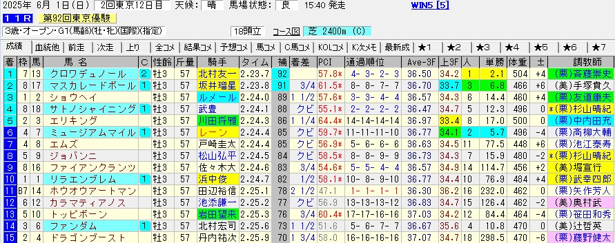 両レースの決定的な違いは前残り超速馬場と差し馬場。春の東京はBコースとCコースで正反対の馬場になっていたわけだ。