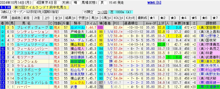 もうこの時点で適距離に戻る3頭が加点されることは間違いない。普通に実績で考えてブレイディヴェーグを最有力候補に指名する。斤量もブレイディヴェーグ56キロ、クイーンズウォーク57キロ、シランケド55キロだもの。普通に考えたらG1馬の56キロを最優先でいい。
