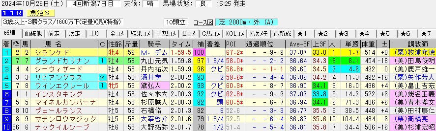 シランケドのアドバンテージは新潟芝2000mで圧勝した経験値があること。大阪弁でネタにされていた馬が、今となっては知らんけどで済まないほど有名になった。ここで勝ち負けを演じるようなら天皇賞・秋(G1)でも注目の存在となるかもしれない。ガシマン次第だなあ。