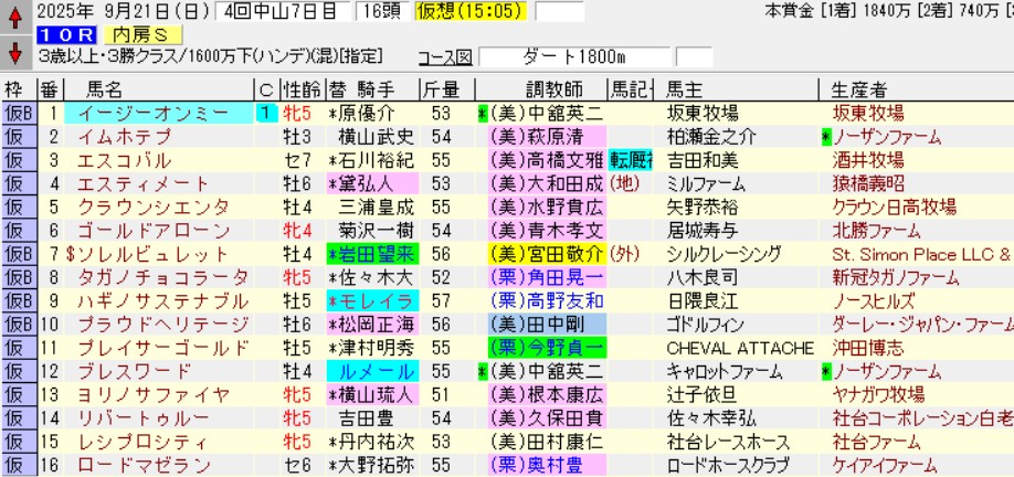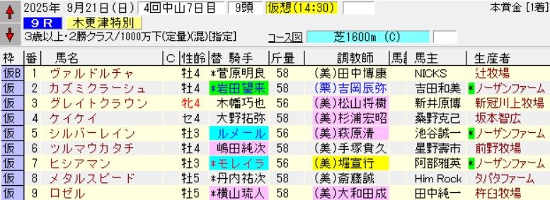 中山09R木更津特別(2勝)芝1600