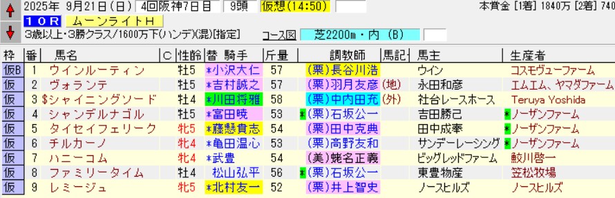(美)田村康仁 7- 0- 1-16/24 29.2% レシプロシティ ※丹内のNGと相殺できるかどうか