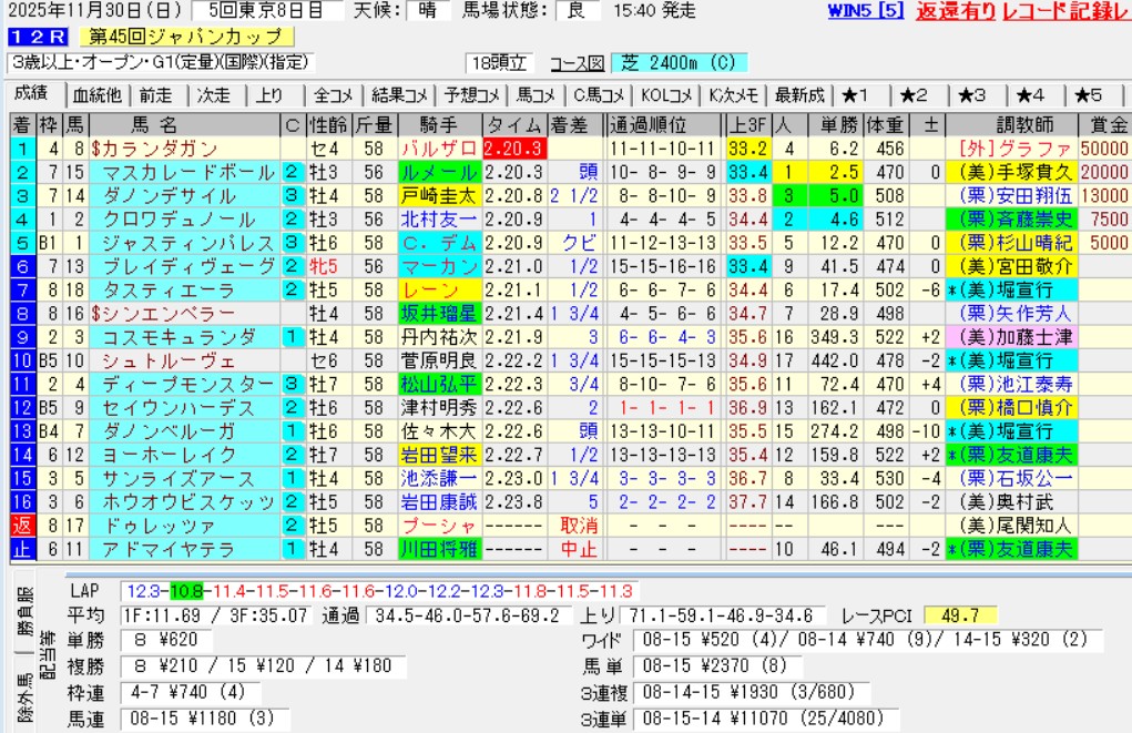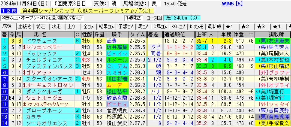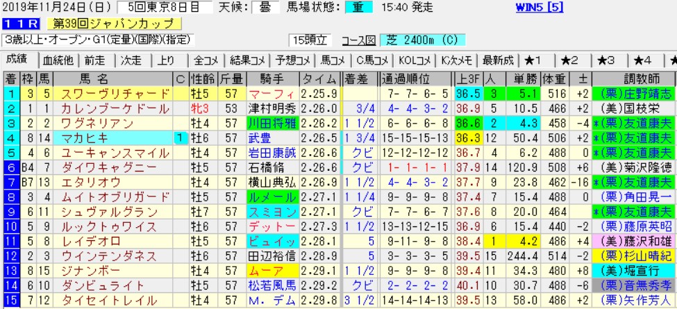 それを踏まえた上で昨年のジャパンCの結果を見てみよう。