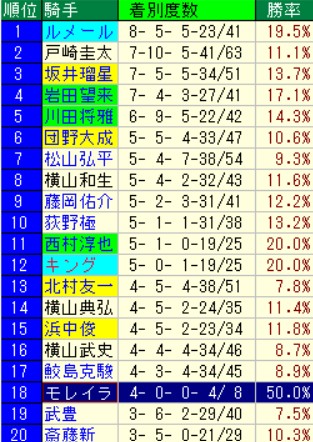 騎乗馬の人気を見ても一目瞭然。6番人気以下の穴馬でも4勝と腕で持ってきた。
