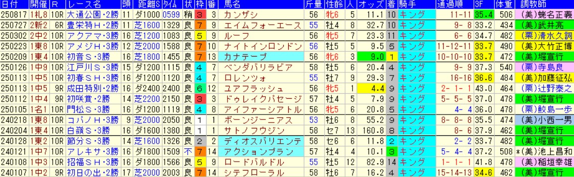 キングの手腕を真っ先に見抜いたのが堀師のため、腕に見合った馬を集めて任せているのもあるだろうが、フェブラリーS(G1)を木村厩舎のコスタノヴァで制したことで流れも変わってきそう。木村師はノーザンの犬としても知られる存在。同厩舎はルメール専用みたいなものだが、今後はルメール以上のキングでということもあり得るか。