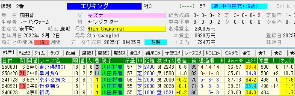 ここをエリキングが勝つようなら、菊花賞で主役を張る可能性も大。