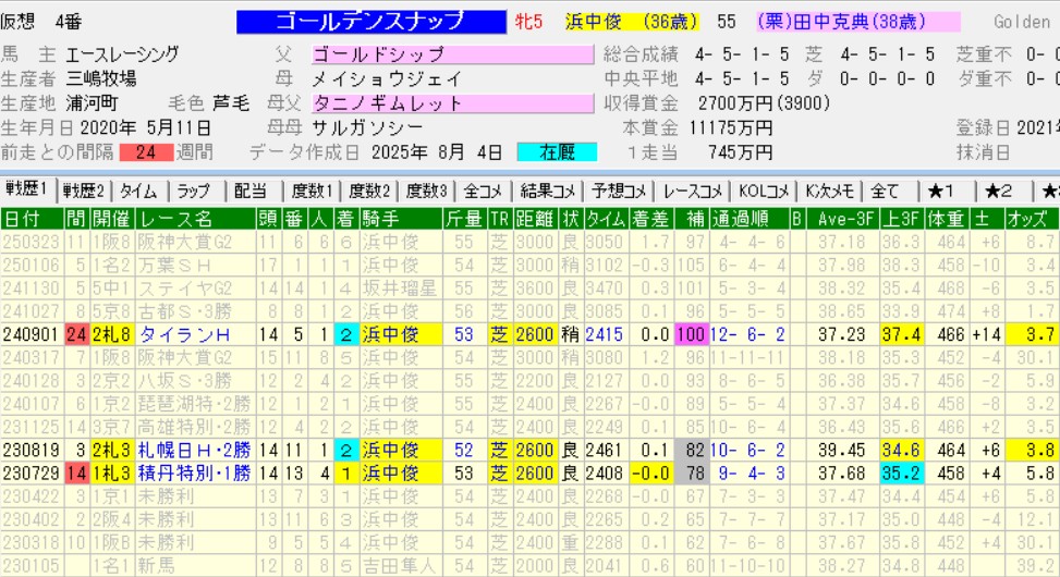まずは1番人気必至のゴールデンシロップさんと浜中俊のコンビが強敵となる。
