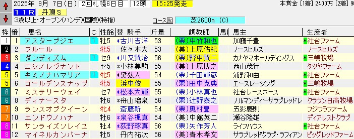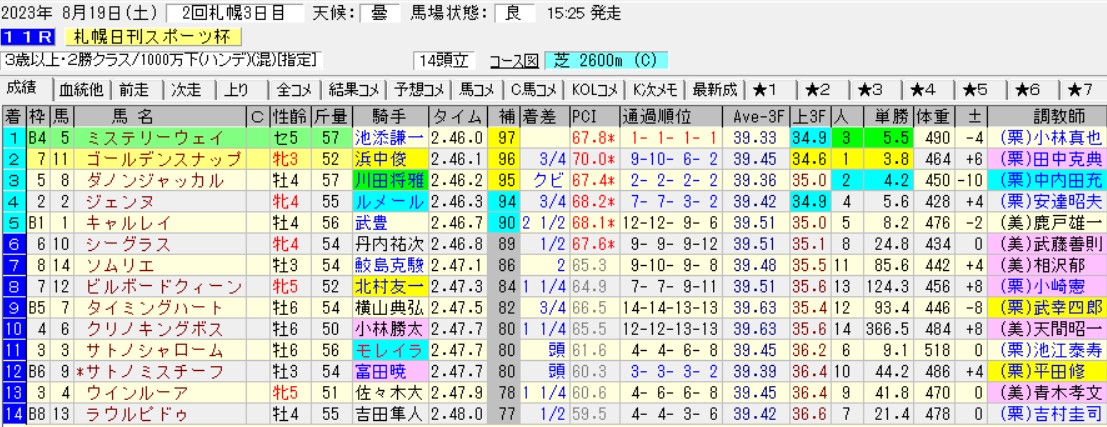 状況的に絶対視するほど抜けた存在ではないことは分かる。札幌芝2600mも過去3回走って2回2着に負けている。当時先着を許したミステリーウェイも出走を予定しているくらいだ。