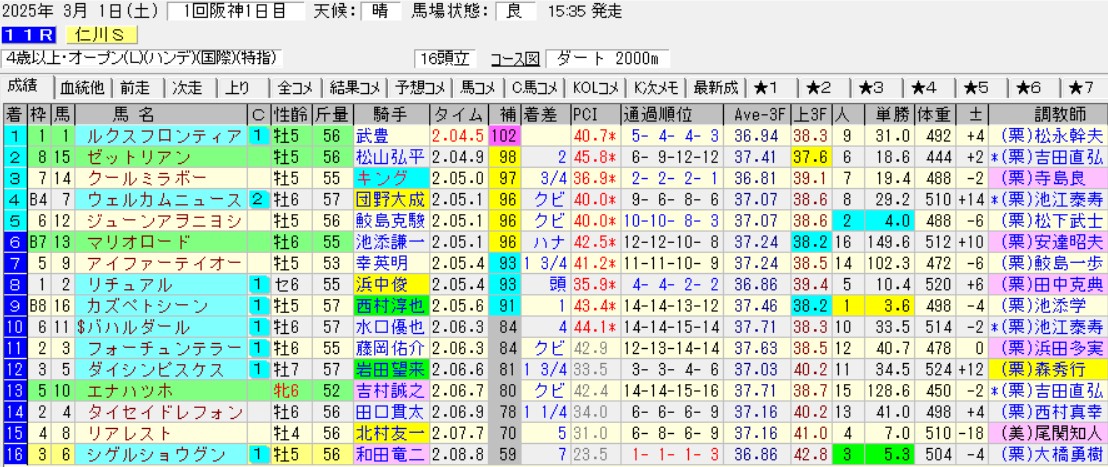 ところが今回はハナ争いに参加しそうな馬が複数。しかも仁川S(L)で先着を許した馬も出てくるという訳だ。