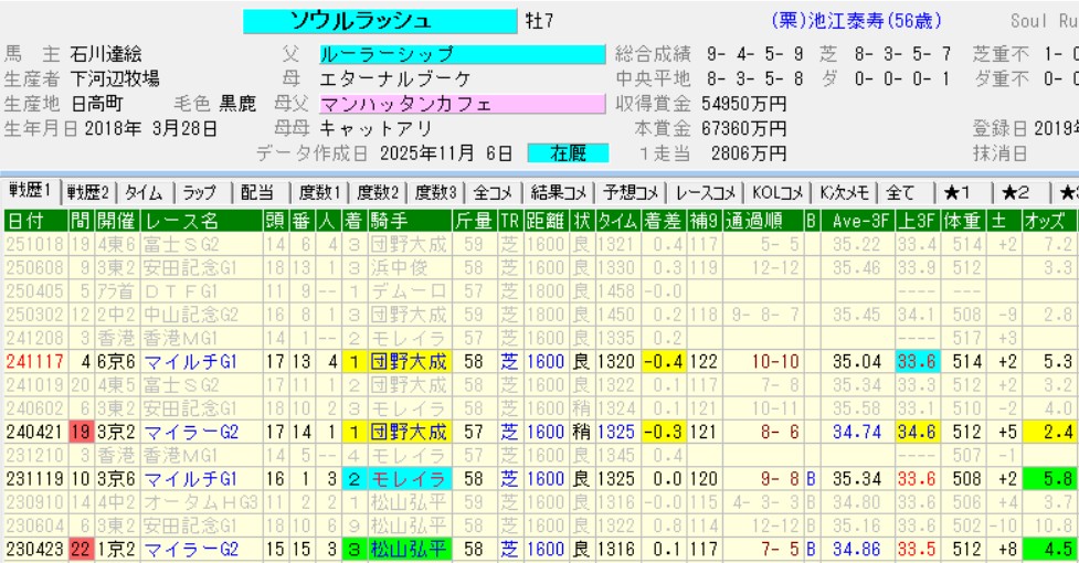 ソウルラッシュ相手では割り引いても、ジャンタルやアスコリだって弱い馬じゃあない。